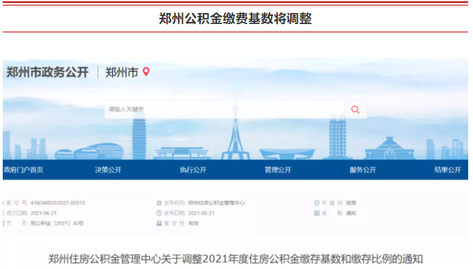 鄭州市住房公積金管理中心最新發(fā)文,7月起,将調(diào)整住房公積金繳存基數和繳存比例!
